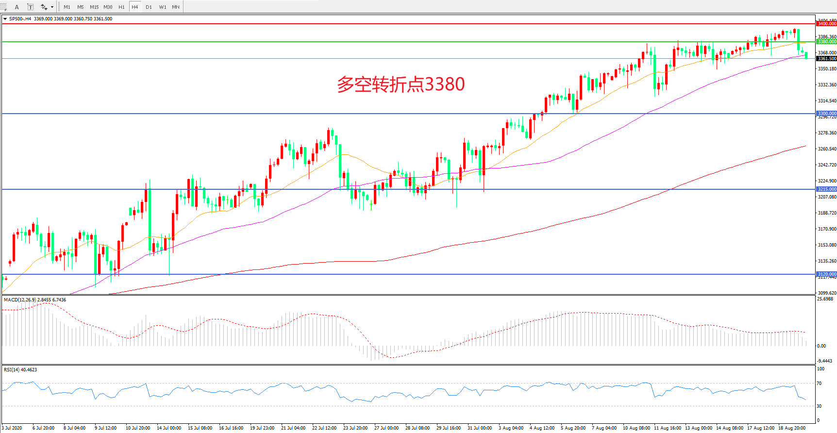 交易策略:在3380.00之下看跌,目标3300.00         3215.00