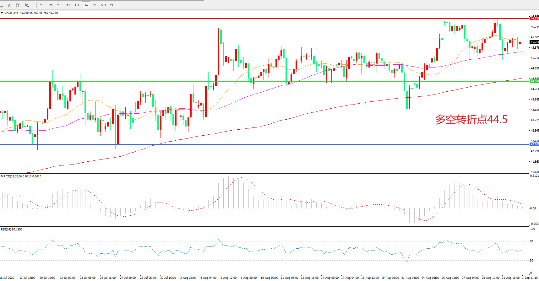 交易策略:  在44.50之上看涨,目标46.50       48.00