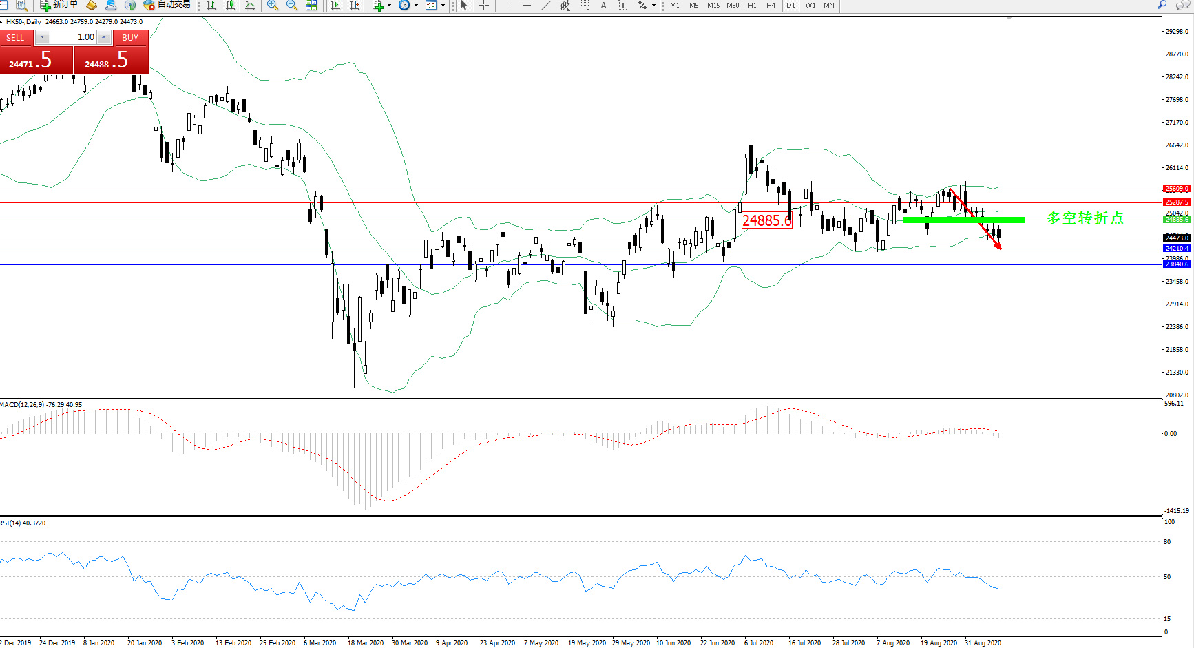 技术点评:长时间维持在布林带指标通道内持续宽幅震荡平移中,期间多次试探上下轨区间节点未果,高位空头动力伺机震荡下移,触及布林带指标下轨附近后开始下行破位,处于布林带指标下轨附近持续震荡整理中,关注中下轨区间转折点,MACD指标处于0轴线下側弱势徘徊有继续下移迹象,RSI指标处于50均衡线附近弱势整理后开始不断下行进入空头区域后平缓下移中;