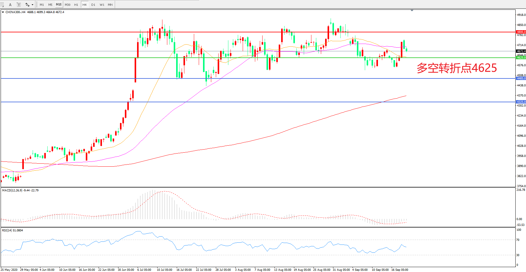 4小时图看,沪深300阳线大幅拉升,短期走势回暖,4625成为短期支撑,均线系统走平, MACD绿柱缩短,RSI指标向上,日内延续震荡概率较大。