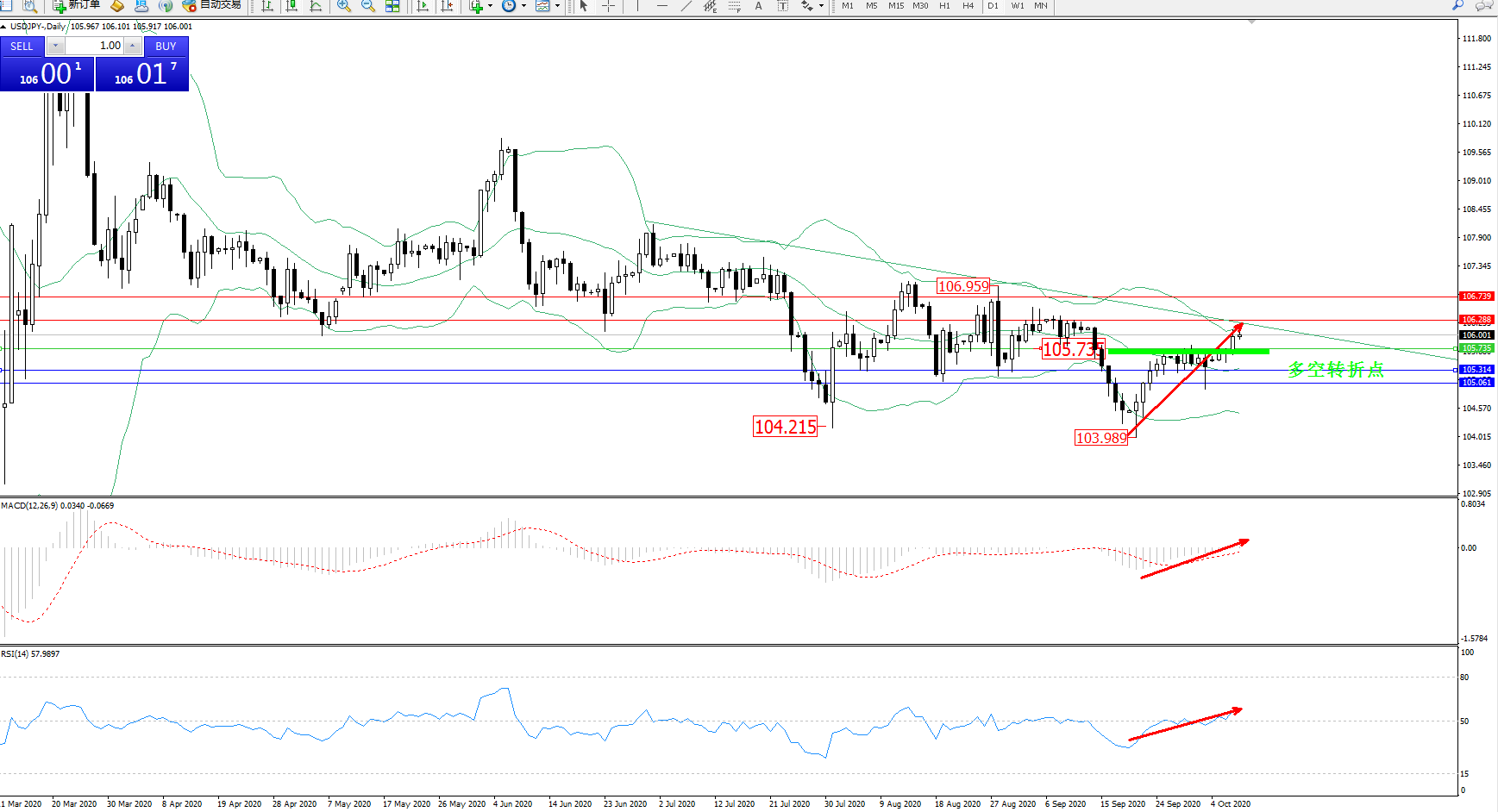 多空转折点:105.735