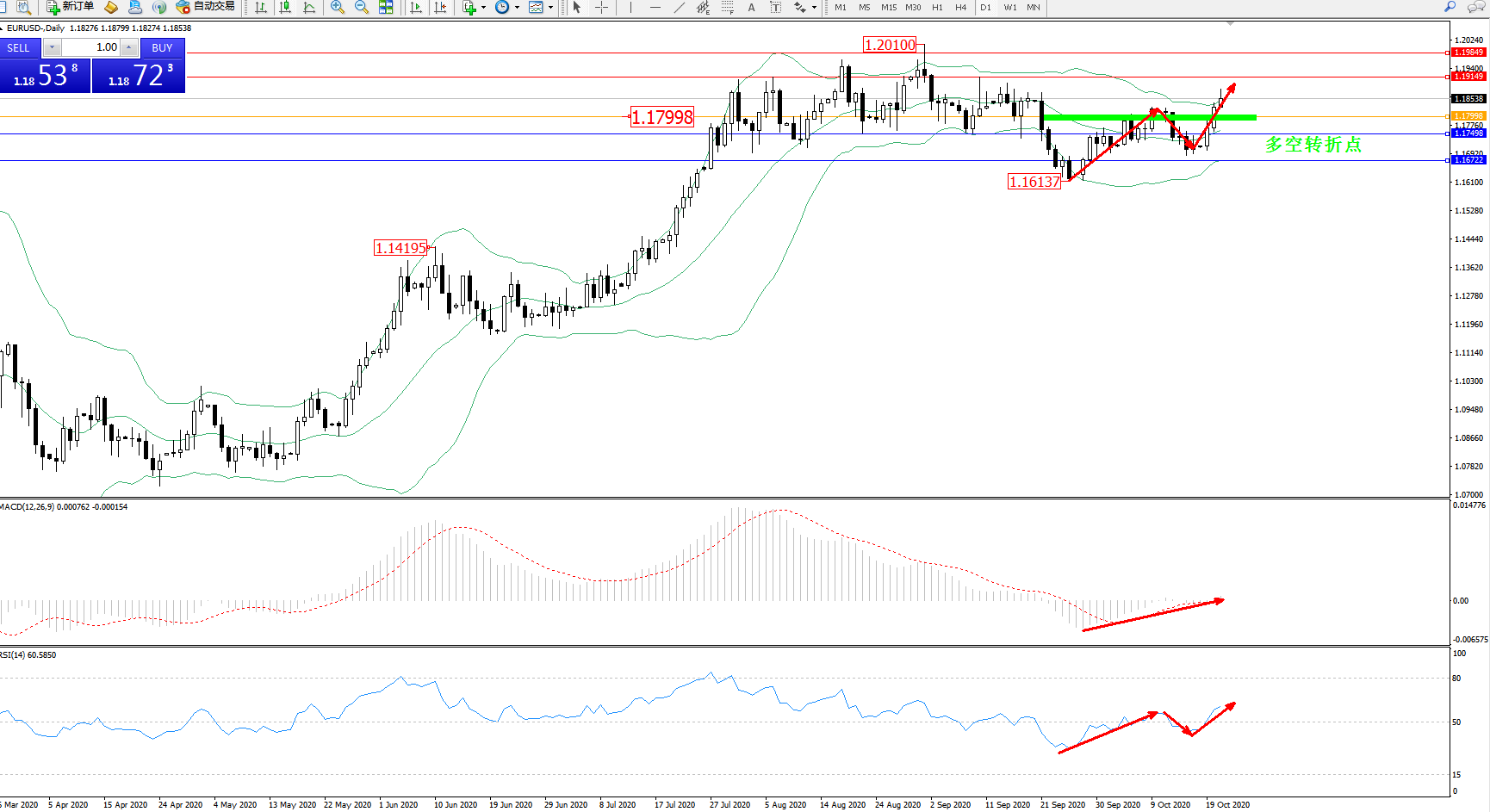 交易策略:1.17998下方看跌,目标1.17498、1.16722