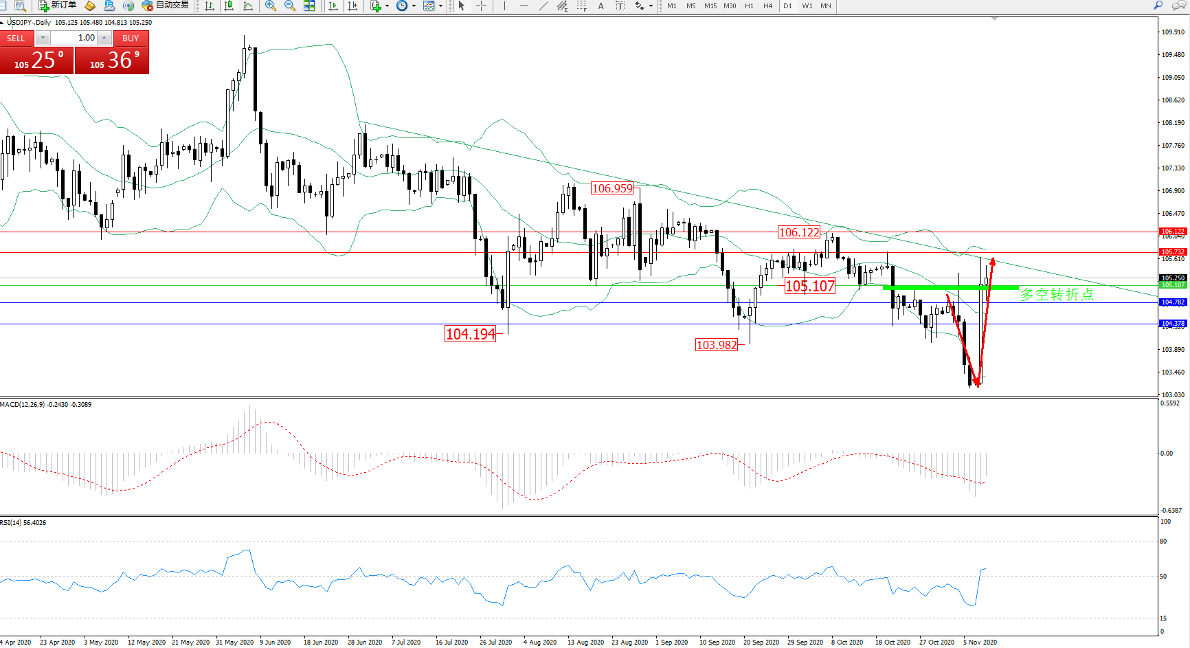 美元兑日元跌0.08%,报105.30。疫苗消息公布后,日元创下3月以来的最大单日跌幅,日元在盘初收复了前一天的部分失地。在疫苗研发终于迎来突破性进展,全球风险情绪重新趋于好转的状况下,此前持续获得追捧的避险日元后市料将迎来抛售潮,在此背景下,预计若美国政治局势在此后进一步平息缓和的话,那么美元兑日元会在数周后重新升上106关口。在疫情危机期间,美国企业不得不进行答复调整,以适应民众旅行和夜生活减少、居家时间延长的情况。从短期和长期来看,这都是非常好的消息。短期内,我们看到股市上涨,这将增加家庭财富。这对未来的消费者支出造成积极的影响。很明显,美国经济还没有脱离险境。我们会遇到挫折,但希望疫苗能让美国经济走上正确的道路。
