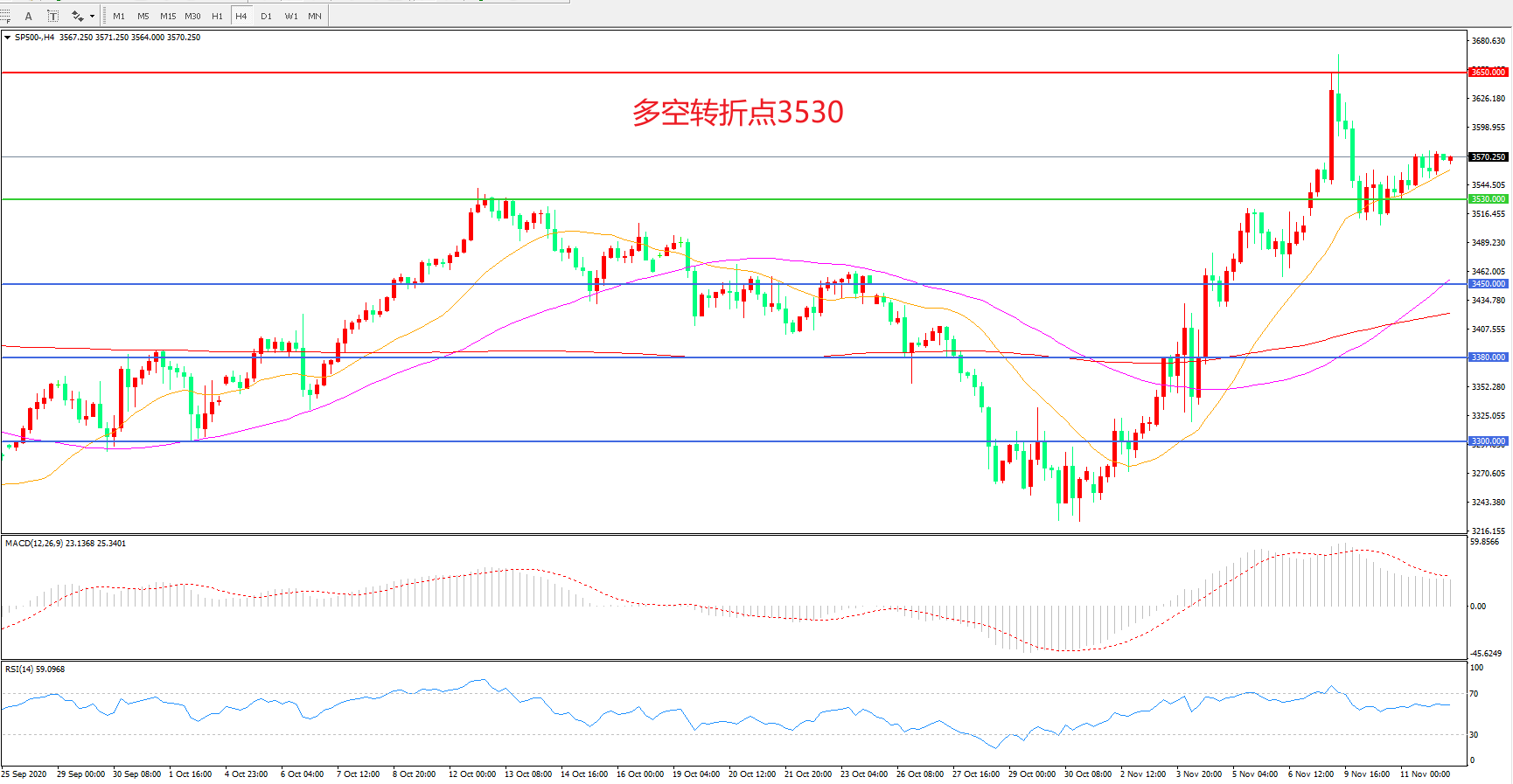 此前辉瑞传出重大的疫苗利好消息,促使投资者进行了为期两天的资金轮动,从科技股转向工业、材料和能源等板块。但投资者昨日改弦更张,再次开始买入包括科技股在内的标普500指数成长股,卖出包括银行股和能源股在内的价值股。随着经济前景好转,预计板块轮动会朝向此前表现较差的一些行业和领域进行。