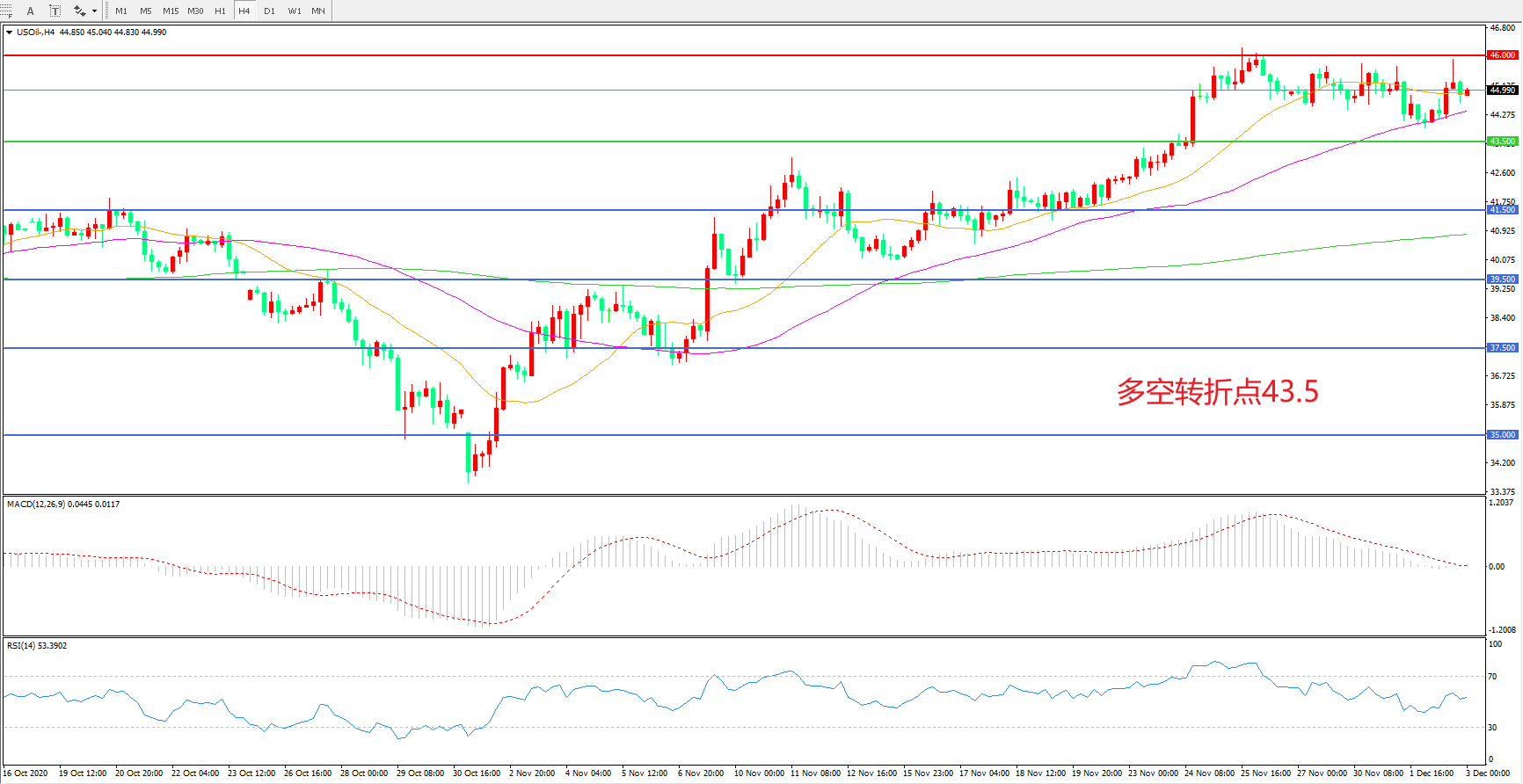 多空转折点:43.50