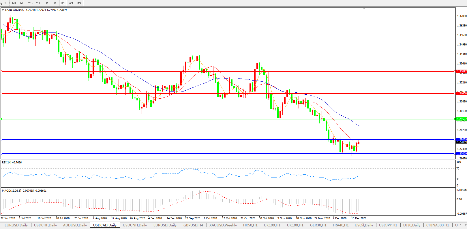 技术面简析:日线图均线呈有序空头排列,汇价低位持续承压,MACD运行于0轴下方但量能0轴下微量,RSI低位开始走升,预计短期汇价大概率将在反弹整理后进一步走低。