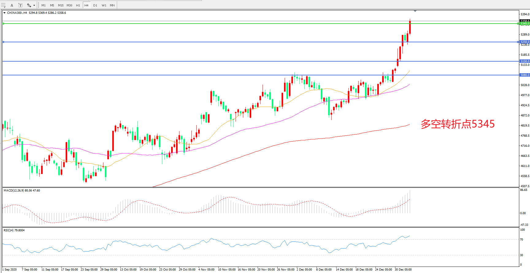 周二(1月5日),元旦假期后A股连续上涨,继本周一大涨后,周二仍然高歌猛进!深300再度大幅拉升,报收5368.6点,接近2015年大牛市中5800点顶部。两市成交高达1.266万亿元,但北向资金仍然净卖出逾44亿元,连续两天净流出。狂飙突进的背后,2021年市场大概率将延续结构性行情,但投资者也要对收益有合理的预期。