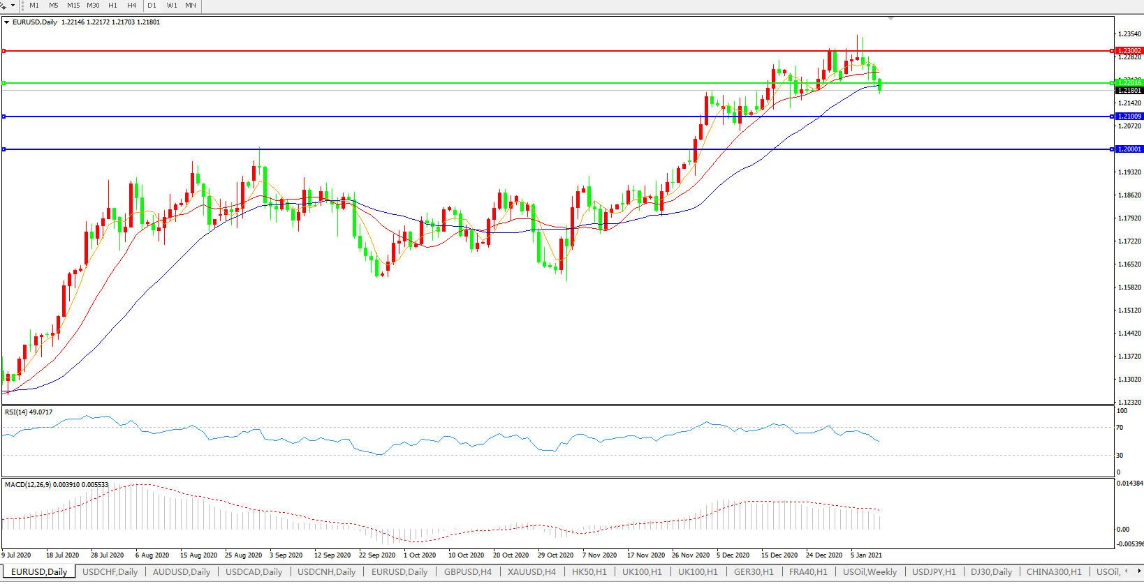 交易策略:1.2200下方看跌,目标1.2100、1.2000