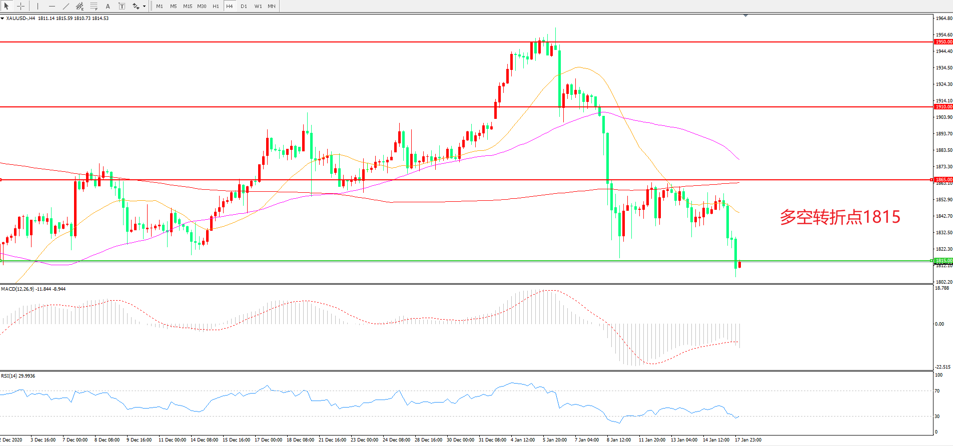 交易策略:在1815.00之下看跌,目标1765.00   1710.00