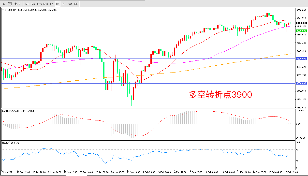 周三(2月17日),美国零售数据优于预期,但美债收益率持续一年来高位,通胀加速回升促使央行缩减QE的担忧继续施压,美股集体低开,好在美联储公布会议纪要未提缩减购债,强调一段时间内政策不变,三大指数中相继转涨,标普500高位震荡后收报3926.75点。但大型科技股多数下跌,苹果跌近1.8%,奈飞跌超1%。
