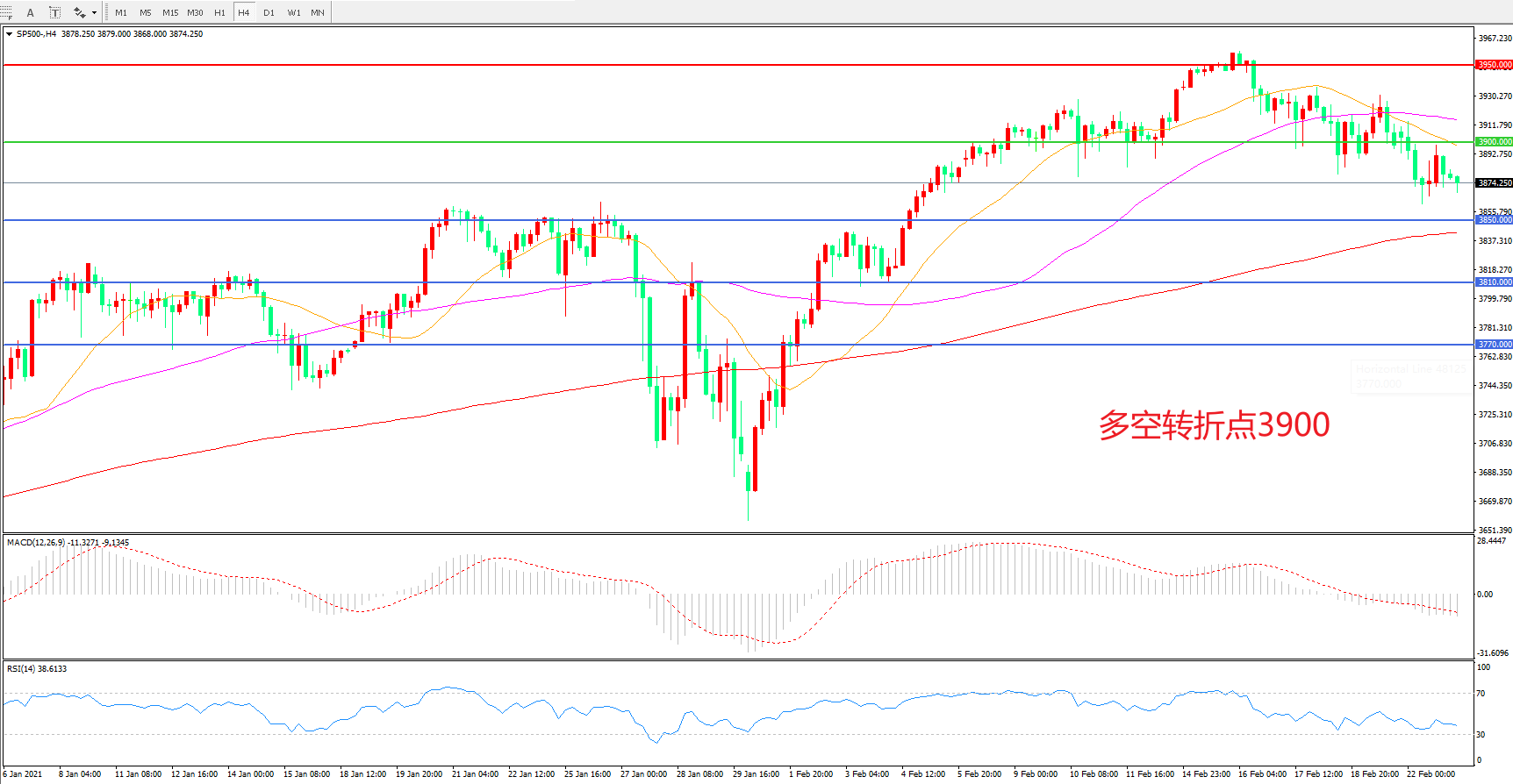 交易策略:在3900.00之下看跌,目标3850.00    3810.00