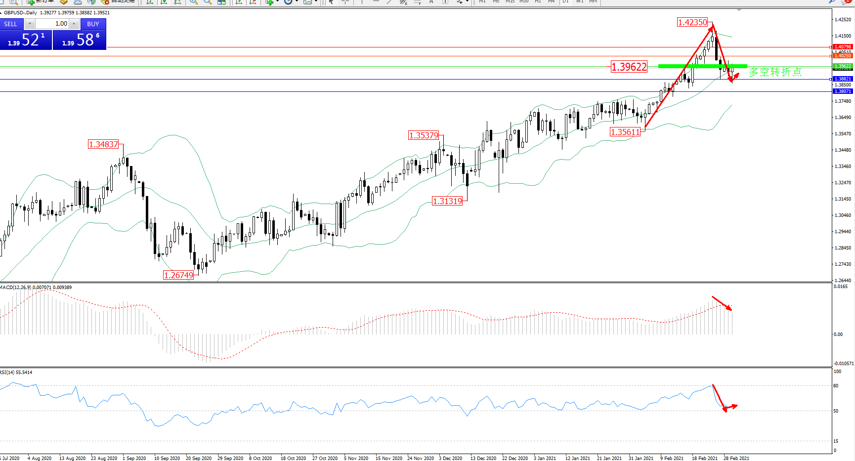 交易策略:1.39622下方看跌,目标1.38821、1.38071