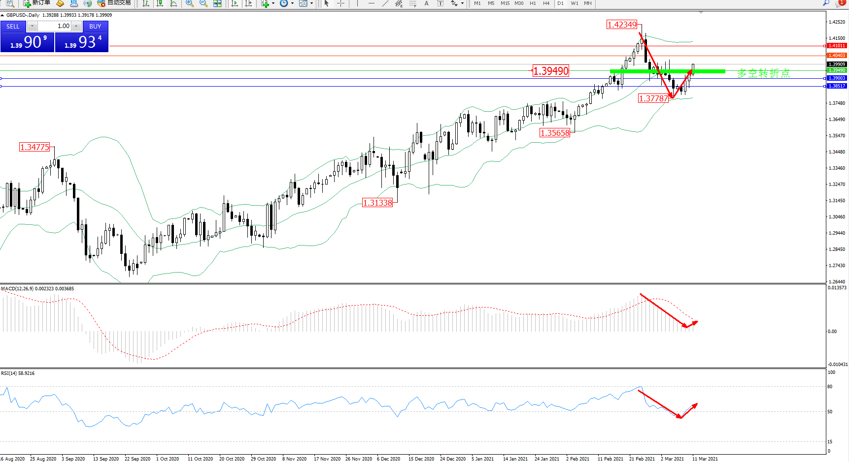 交易策略:1.39490上方看涨,目标1.40403、1.41011