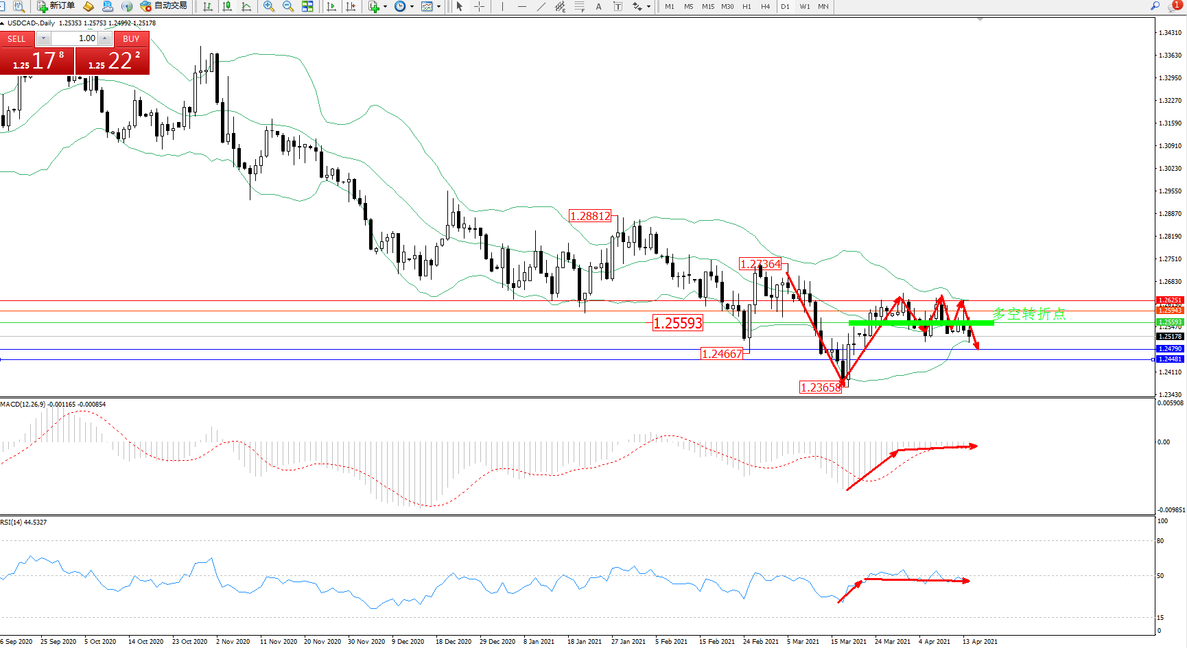 技术点评:长时间维持在布林带指标通道内持续窄幅震荡下行,低位抵达1.23658位置后得到支撑,多头动力强势入场,纠结于中上轨区间持续震荡平移,多空动力短期焦灼,市场开始弱势整理,布林带指标呈收口走势持续中,MACD指标处于0轴线下方空头区域维持窄幅整理平移中,RSI指标处于50均衡线附近弱势徘徊中;