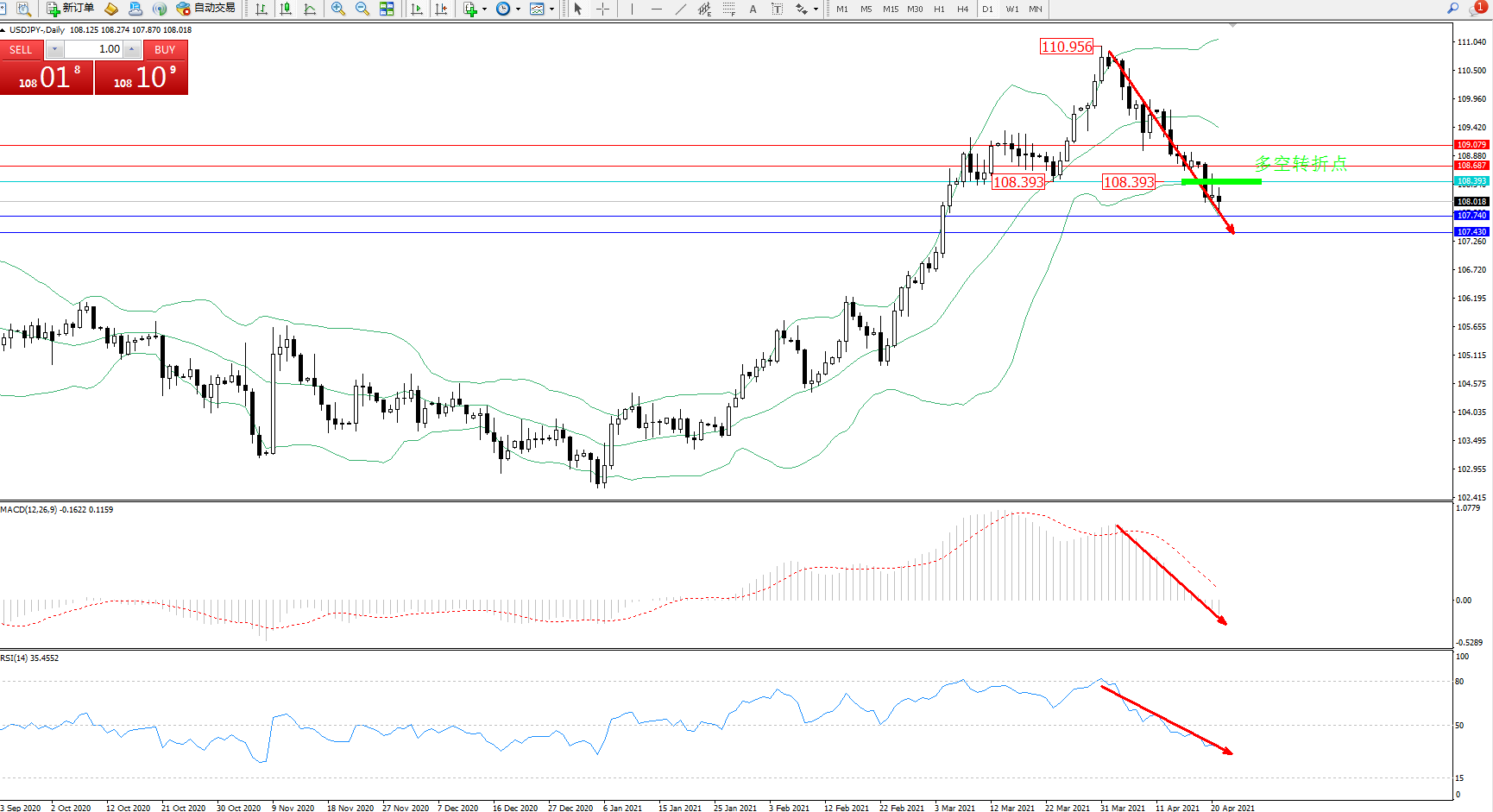 美元兑日圆弱势下行至108.018附近震荡,日本将在2021财年恢复经济增长,政府总体赤字也将较上年同期减少。传统的“避风港”资产和波动率指数本月受到了一些追捧。不过迄今为止还算温和,而且经常被封锁和政策援助等其他与疫情大流行有关的特殊影响所淹没。日元和瑞郎均走高,据日本媒体预测,东京都会区非常可能在此后的“黄金周”假期期间采取紧急措施,预计相应措施时限将自4月29日至5月9日,但不排除进一步延长的可能性。而在紧急措施生效期间,当地所有综合性商业设施都必须关门歇业以防人群进一步聚集。日本央行提议购买4750亿日元的1-3年期日本国债;日本央行提议购买4500亿日元的5-10年期日本国债,日本央行拟购买300亿日元的浮动利率日本国债。日本央行提出购买7500亿日元TBS未来直接交割 。