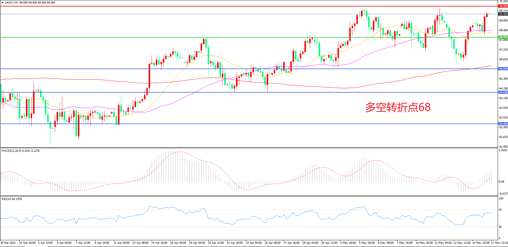 周一(5月17日),欧洲经济复苏带来的乐观情绪抵消了亚洲新冠疫情增加及新的限制措施带来的担忧,布伦特原油先跌后涨,收报69.50美元/桶。最近市场有两个是需要我们格外的关注的点,美国输油管道的事件将会影响到本周的API和EIA数据,具体的表现可能为全口径库存的大幅增加,数据公布时,可能会有较大的行情波动。