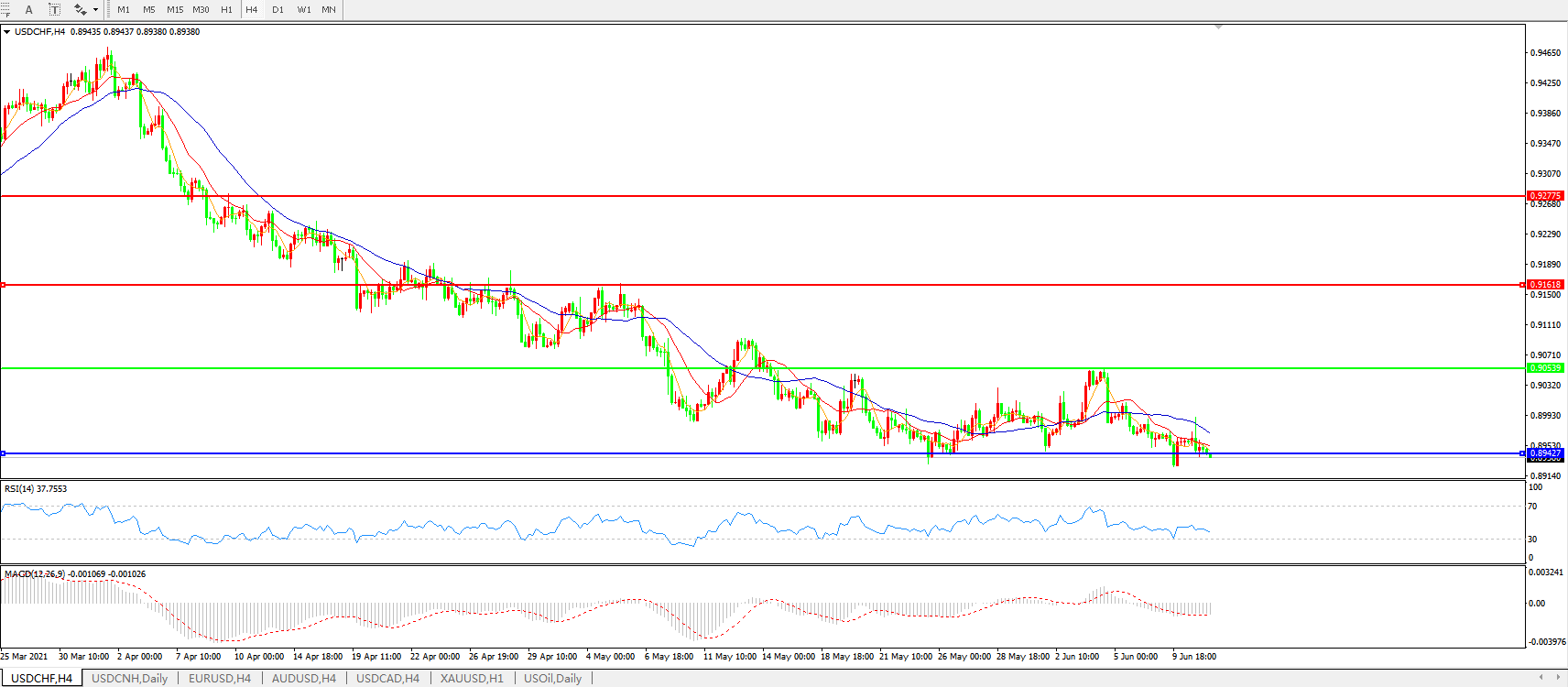 美元兑瑞郎USDCHF    4小时图: