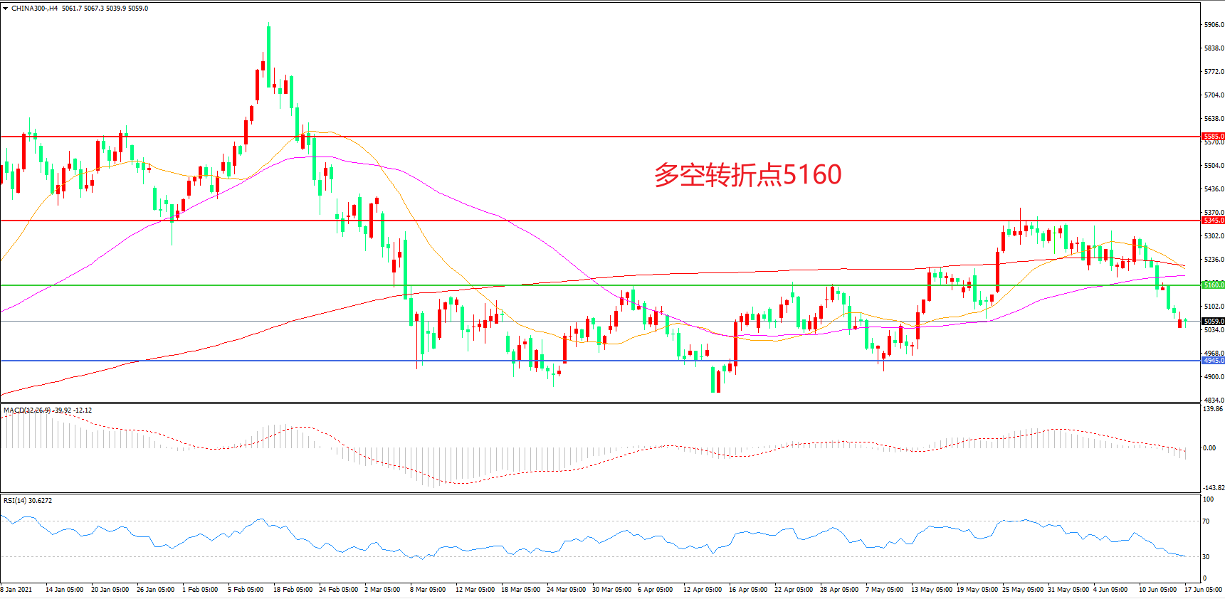 多空转折点:5160.00