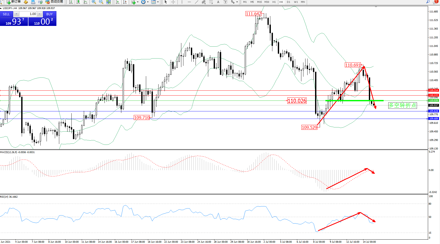 技术点评:低位多头动力持续震荡上扬,触及布林带指标上轨附近节点110.691位置后遇阻回撤,触及下轨附近节点后不断下行中,短期或将延续空头动力不断向下移动,MACD指标处于空头区域低位持续震荡上移至0轴线附近弱势徘徊后再度向下移动,RSI指标纠结于50均衡线附近持续宽幅震荡后空头动力强势下探中;