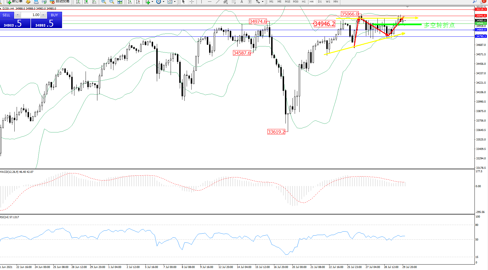 道琼斯指数7月29日(周四)收盘上涨153.60点,涨幅0.44%,报35084.53点;美国股市周四创下历史高位,因为最新经济数据缓解了对通胀以及美联储缩减超宽松政策的担忧。美国所有主要股指全部上涨,美国公布了第二季度国内生产总值数据后,股市跃升;数据显示尽管第二季度整体增长弱于预期,但消费者支出强劲。另一份报告显示,美国上周首次申请失业救济人数下降,但仍高于预期。