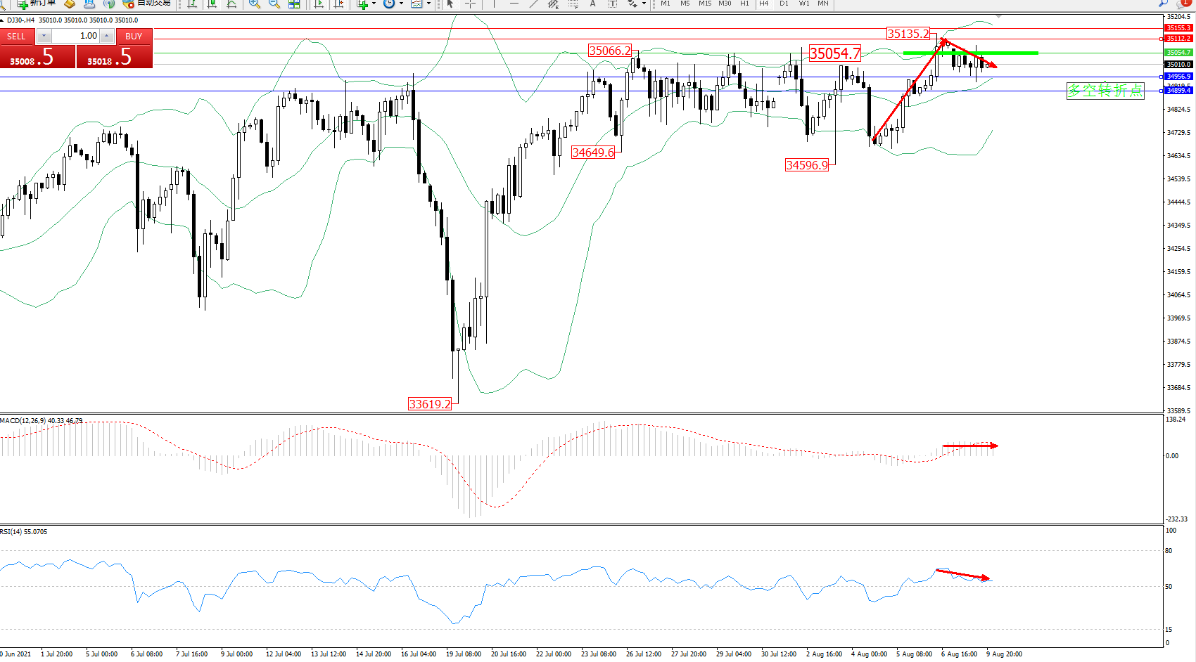 技术点评:高位长时间维持在布林带指标通道内宽幅震荡,多头动力处于中上轨区间窄幅整理,短期或出现短暂回撤震荡,布林带指标呈张口走势后开始收口,MACD指标处于0轴线上方多头区域弱势平移,RSI指标处于50均衡线上方持续徘徊;