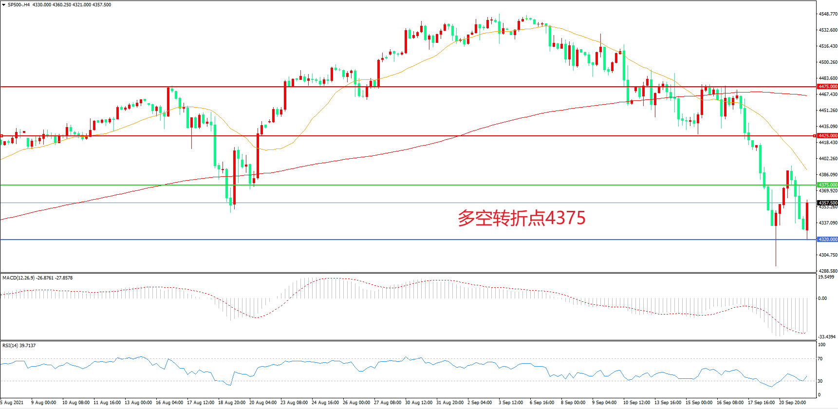 多空转折点:4375.00