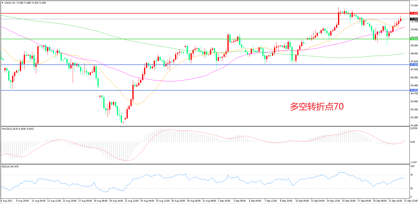 交易策略:在70.00之上看涨,目标72.50                75.00