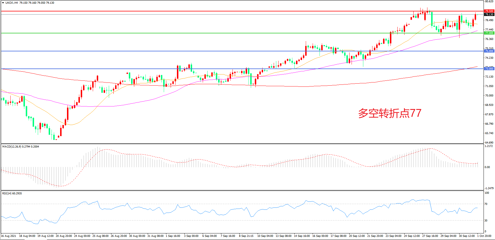 交易策略:在77.00之上看涨,目标79.50                 83.00