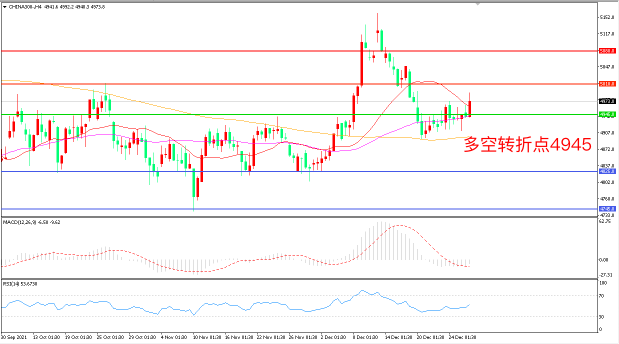 4小时图看,沪深300以55周期均线为依托长阳拉升,短期走势偏强,4945成为下方支撑, MACD绿柱缩短,RSI指标走平,日内延续震荡概率较大。