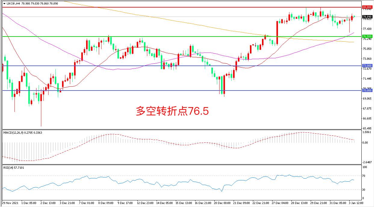 周一(1月3日),投资者聚焦本周二召开的OPEC+产油会议,布伦特原油延续高位震荡,收报78.89美元/桶。多名知情人士透露OPEC+将维持2月增产40万桶/日的计划,并表示奥密克戎毒株对需求的影响温和而短暂,风险偏好回升的氛围下,油价有望延续过去一年的强势表现。