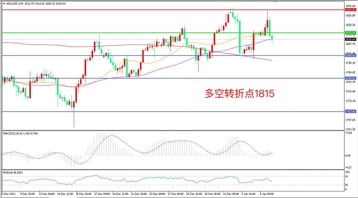 交易策略:在1815.00之下看跌,目标1800.00 1785.00