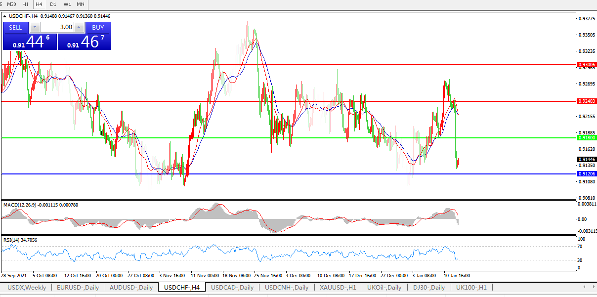 交易策略:0.9180下方看跌,目标0.9120、0.9040