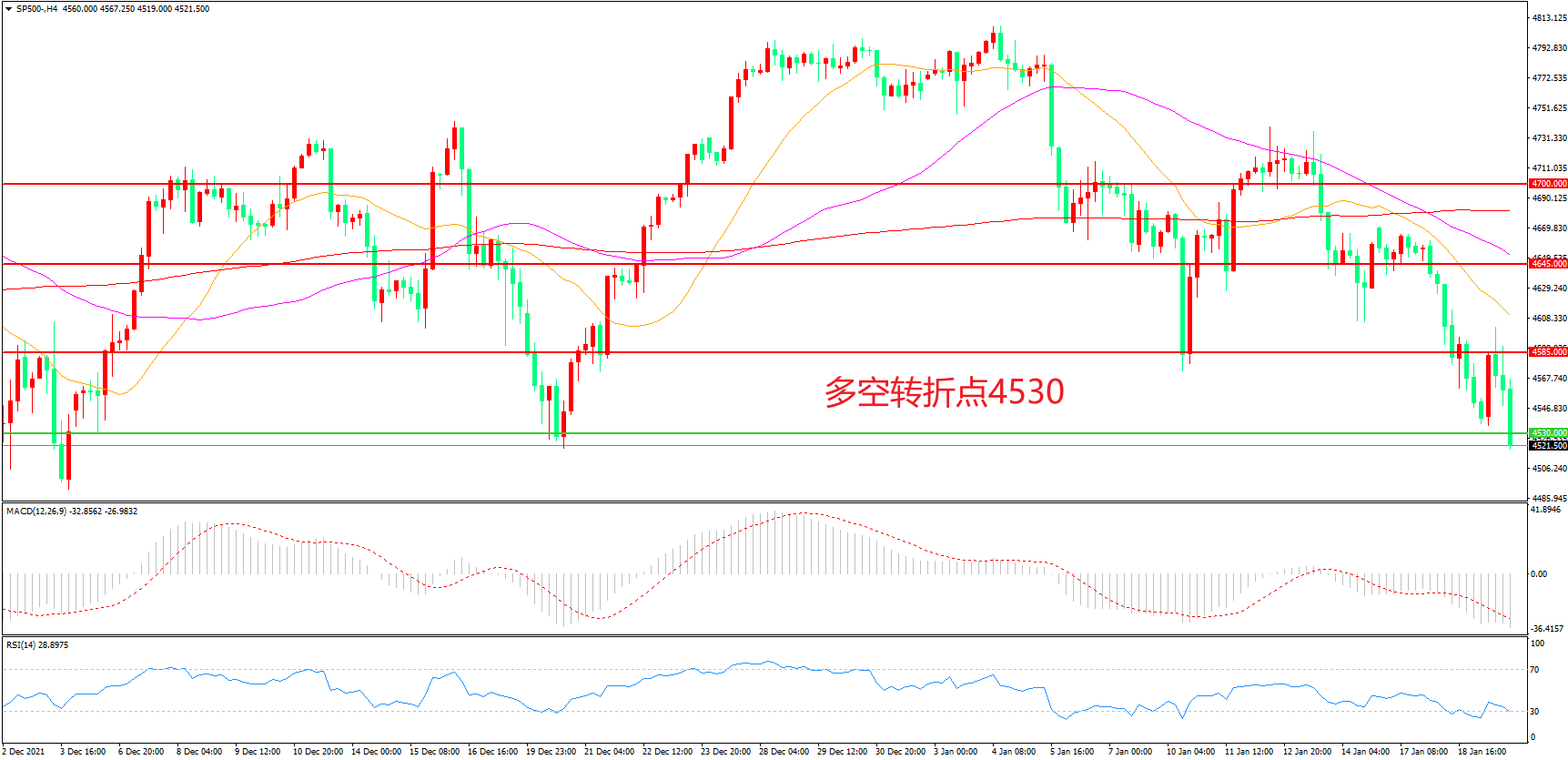 交易策略:在4530.00之下看跌,目标4470.00 4400.00