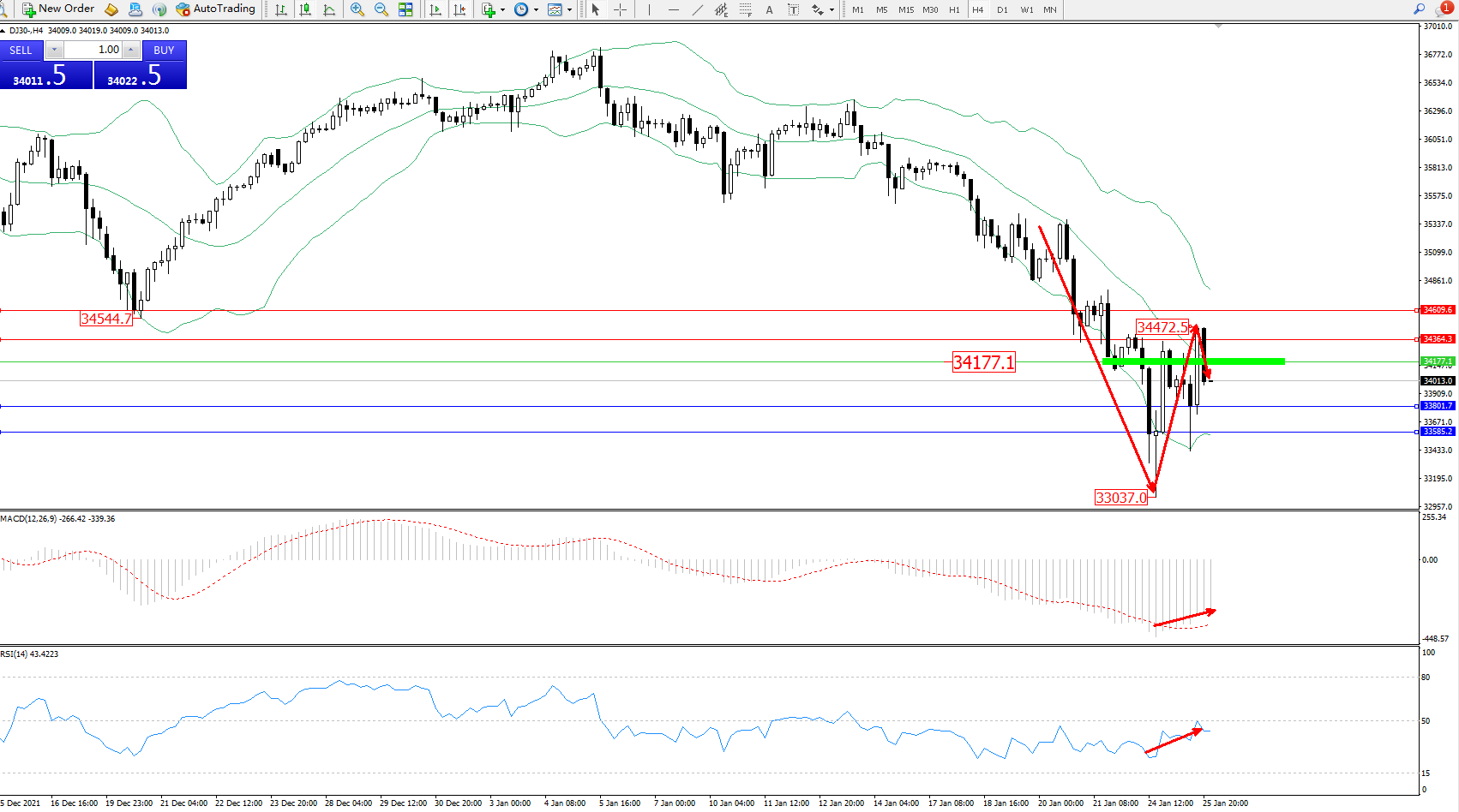 技术点评:空头动力延续布林带指标中下轨区间持续震荡下行,低位抵达33037位置节点后,多头动力强势反转上移,触及布林带指标中轨附近节点开始维持巨震,短期维持在该位附近整理,布林带指标呈收口走势中,MACD指标处于空头区域维持震荡缓慢上移,RSI指标处于空头区域持续震荡至50均衡线下侧徘徊中;