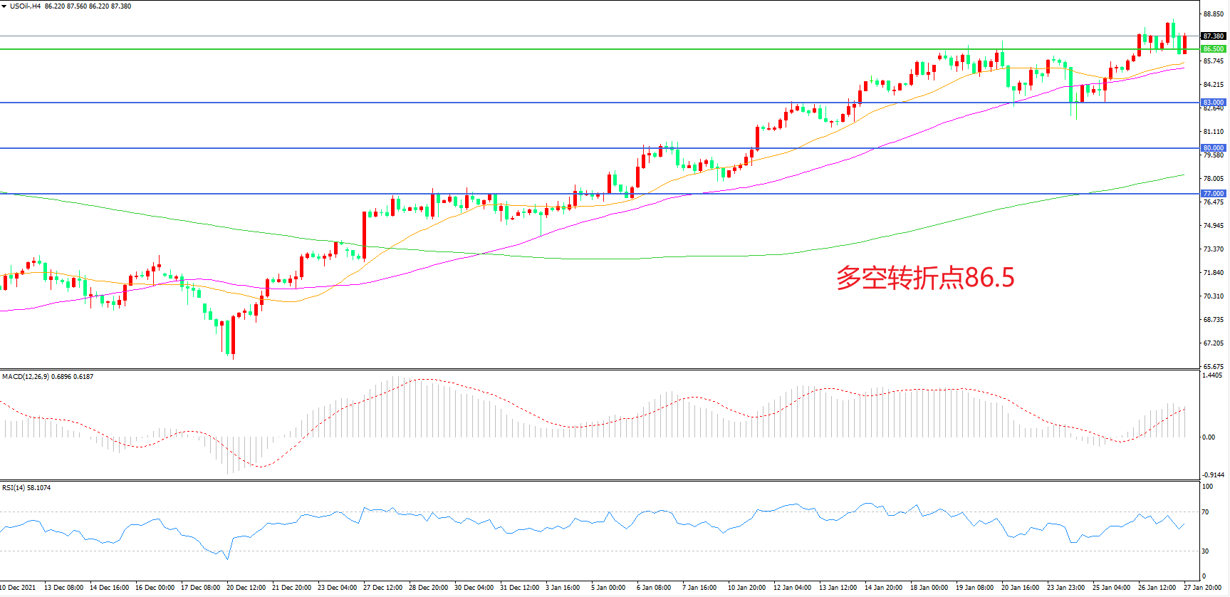 备选策略:在86.50之下看跌,目标83.00 80.00