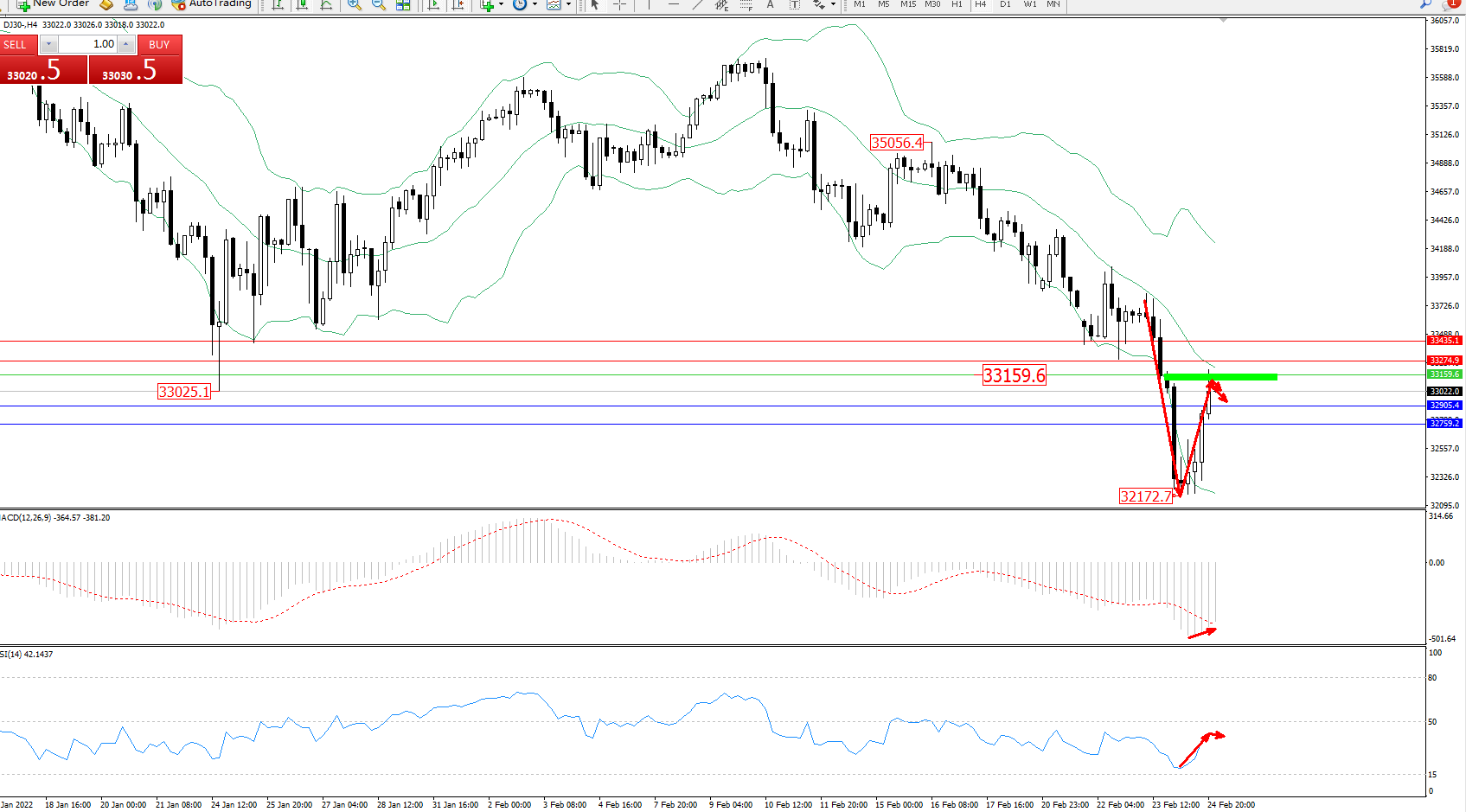 道琼斯指数2月24日(周四)收盘上涨91.12点,涨幅0.28%,报33222.88点;美股收盘,拜登讲话提振美股,三大股指低开高收,美国总统拜登:七国集团同意进一步对俄罗斯实施制裁。对俄罗斯实施的进一步制裁将是“毁灭性的”。俄罗斯军队已经开始对乌克兰发动无端攻击。俄罗斯对乌克兰的袭击是有预谋的。 普京拒绝了外交手段。 俄罗斯的袭击基本上与预期一致。俄罗斯政府对乌克兰进行了网络攻击。美国一直对世界保持透明并分享俄罗斯的计划,所以没有造成混乱。