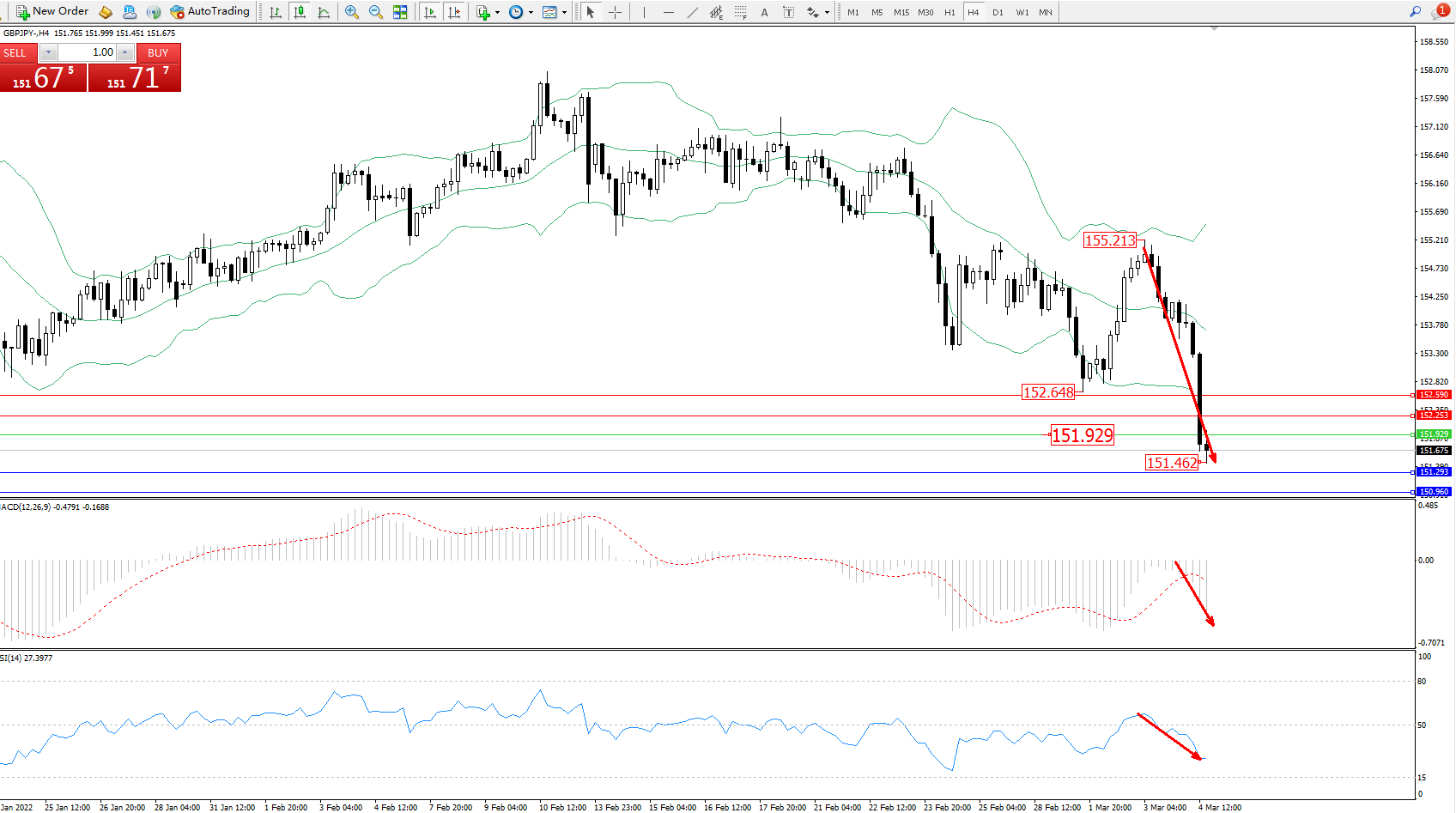技术点评:空头动力延续布林带指标下轨附近强势下挫,低位抵达151.462附近整理,短期空头动力有继续下行态势,布林带指标呈张口走势态势良好,MACD指标处于0轴线下方不断下挫,RSI指标处于50均衡线下侧不断下行中;