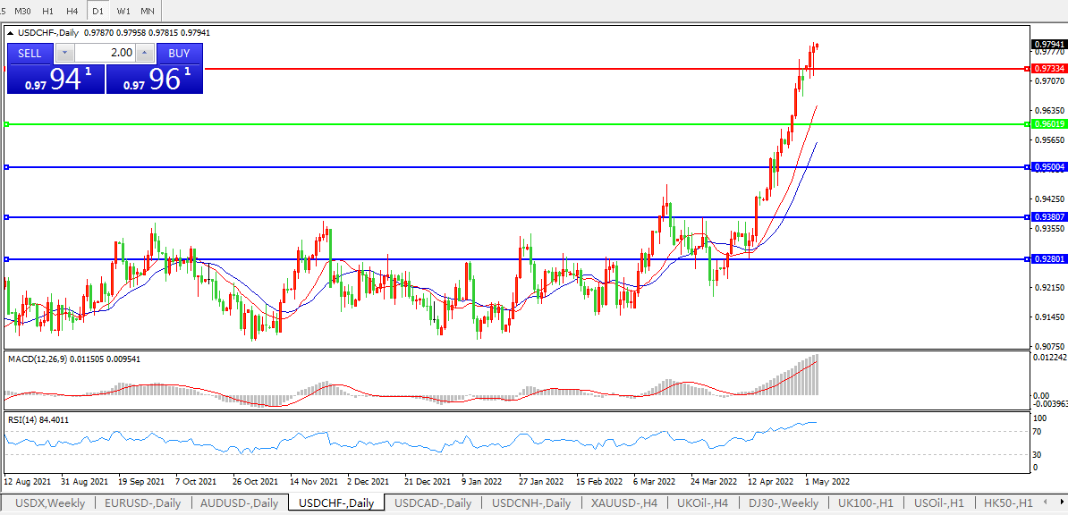 交易策略:0.9600上方看涨,目标0.9730,0.9900