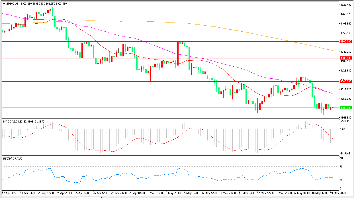 周四(5月19日),高通胀侵蚀企业盈利,风险资产抛售浪潮持续,标普500延续低迷走势,收报3902.55点。 目前FANG四大科技股的市值已较去年11月的纪录高位蒸发2万亿美元,龙头科技股的低迷导致美股跌跌不休,经济衰退的阴霾下,美股仍以下行为主。