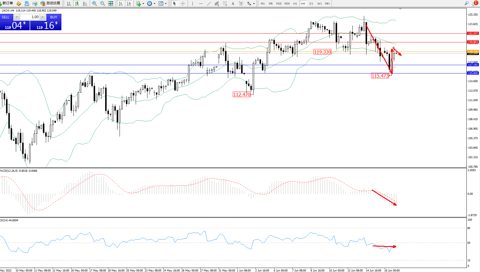 交易策略:在119.330下方看跌,目标117.192、115.845