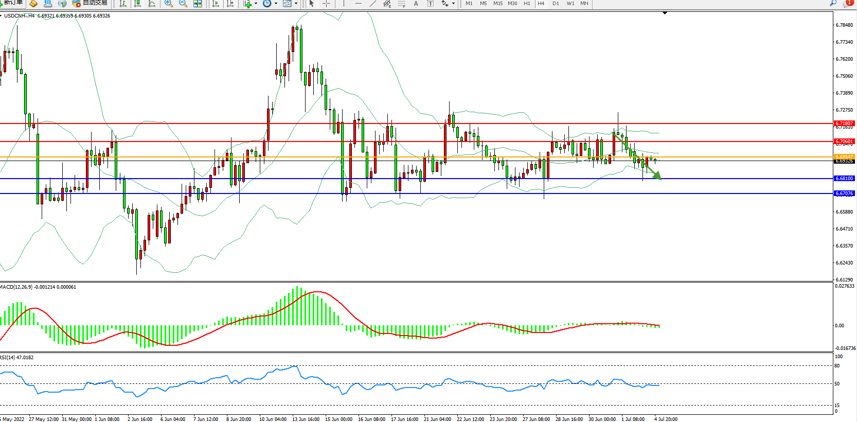 交易策略:6.69547下方看跌,目标6.68100、6.67079