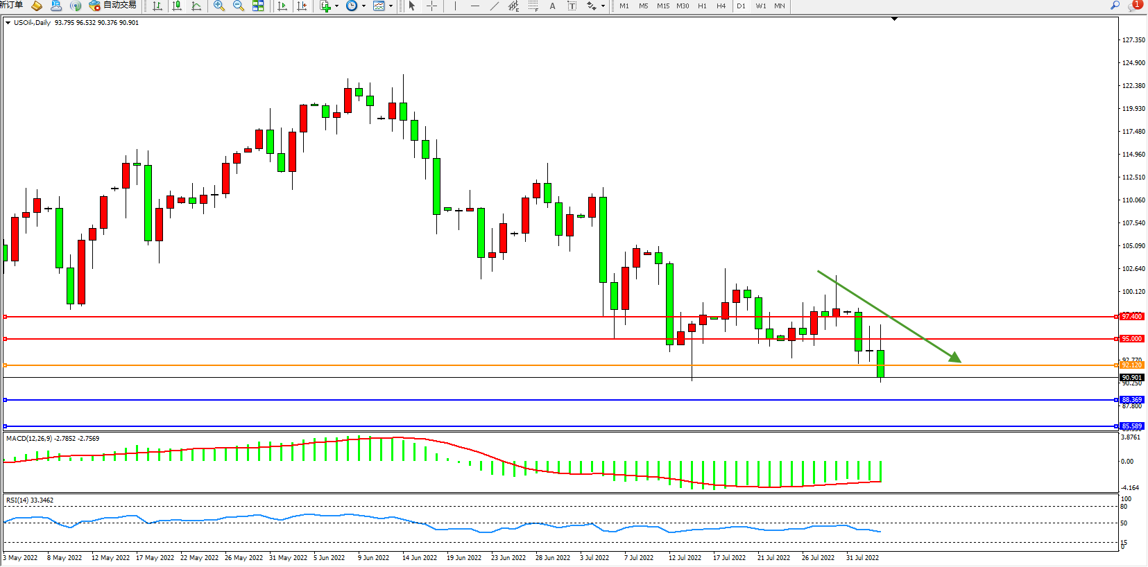 原油维持90.901附近震荡,美国截至7月29日当周EIA原油库存意外大增,除却战略储备的商业原油上周进口734.2万桶/日,较前一周增加117.8万桶/日;上周原油出口减少103.6万桶/日至351.2万桶/日。