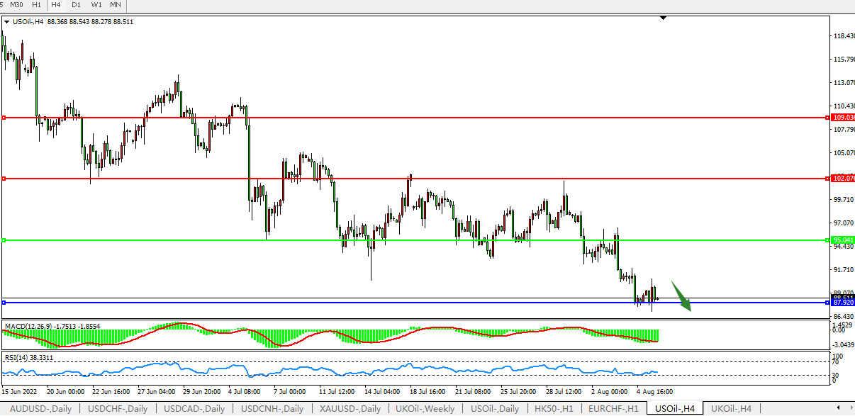 美国原油USOil 4小时图