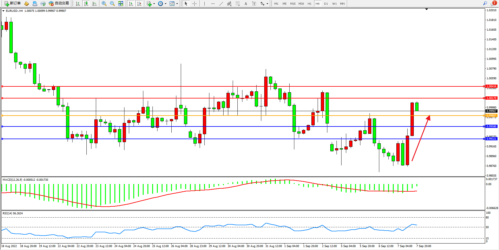 交易策略:0.99807上方看涨,目标1.00170、1.00416