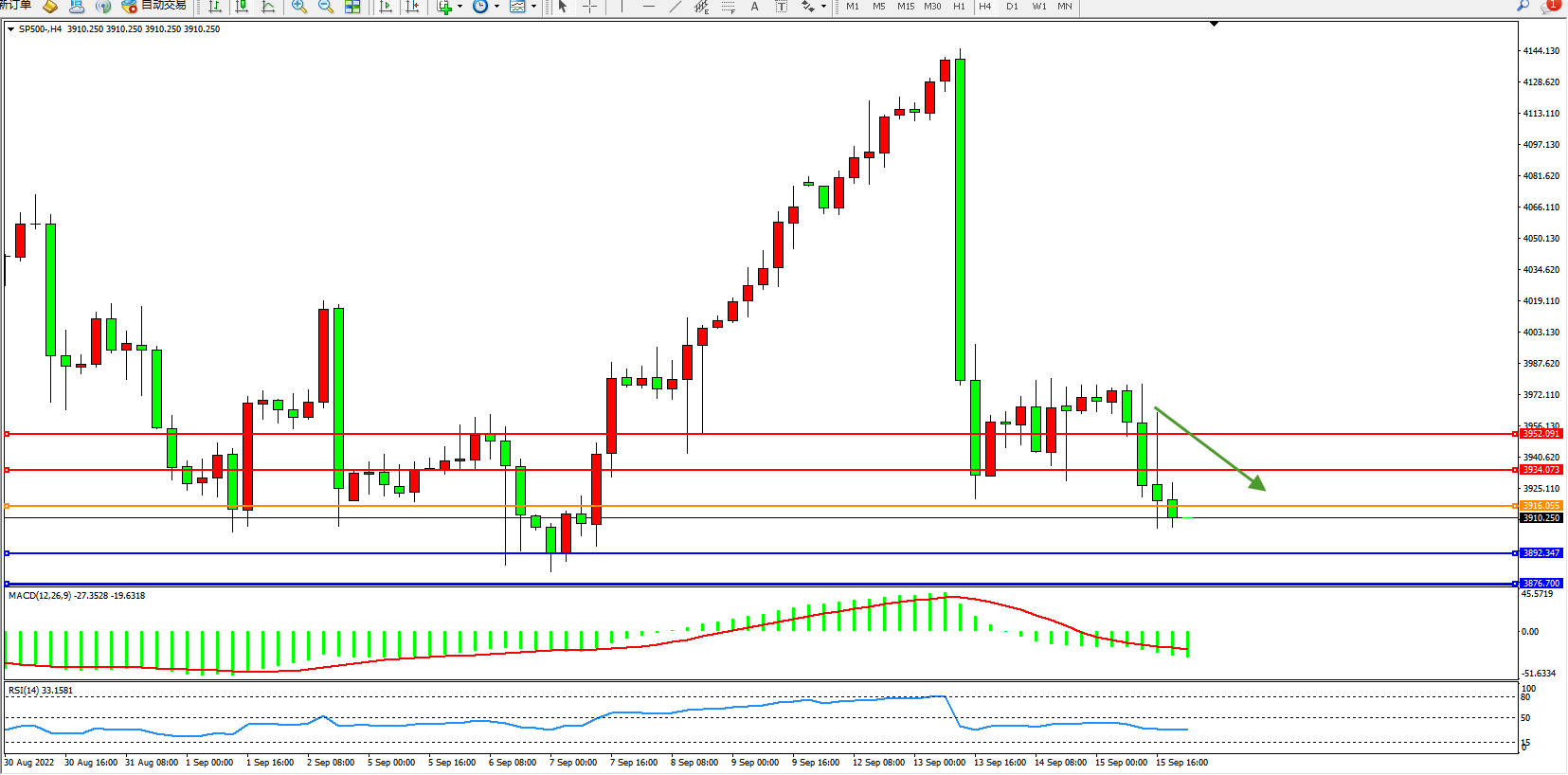 标普维持500指数9月15日(周四)收盘下跌45.09点,跌幅1.14%,报3900.92点;美国8月份进口价格连续第二个月下降,缓解了通胀压力,美元走强有助于降低海外制造产品的成本。