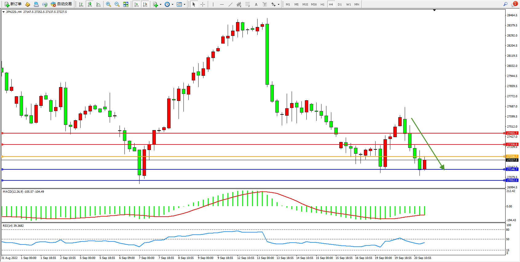 日经:低位宽幅震荡下行 JPN225  DJ30