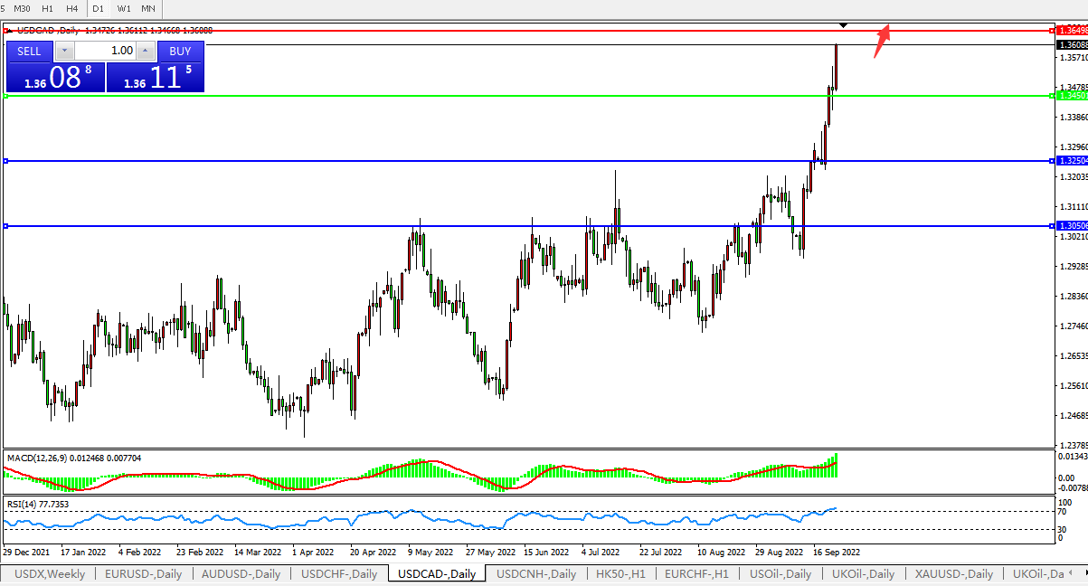 美元兑加元大涨2.10%至1.3543,创2020年7月20日以来新高至1.3550。加拿大8月份通胀年率从7月份的7.6%大幅下降至7.0%,连续第二个月大幅走低。由于家庭偿债率可能创下历史新高,若通胀见顶坐实,可能限制加拿大央行激进加息。