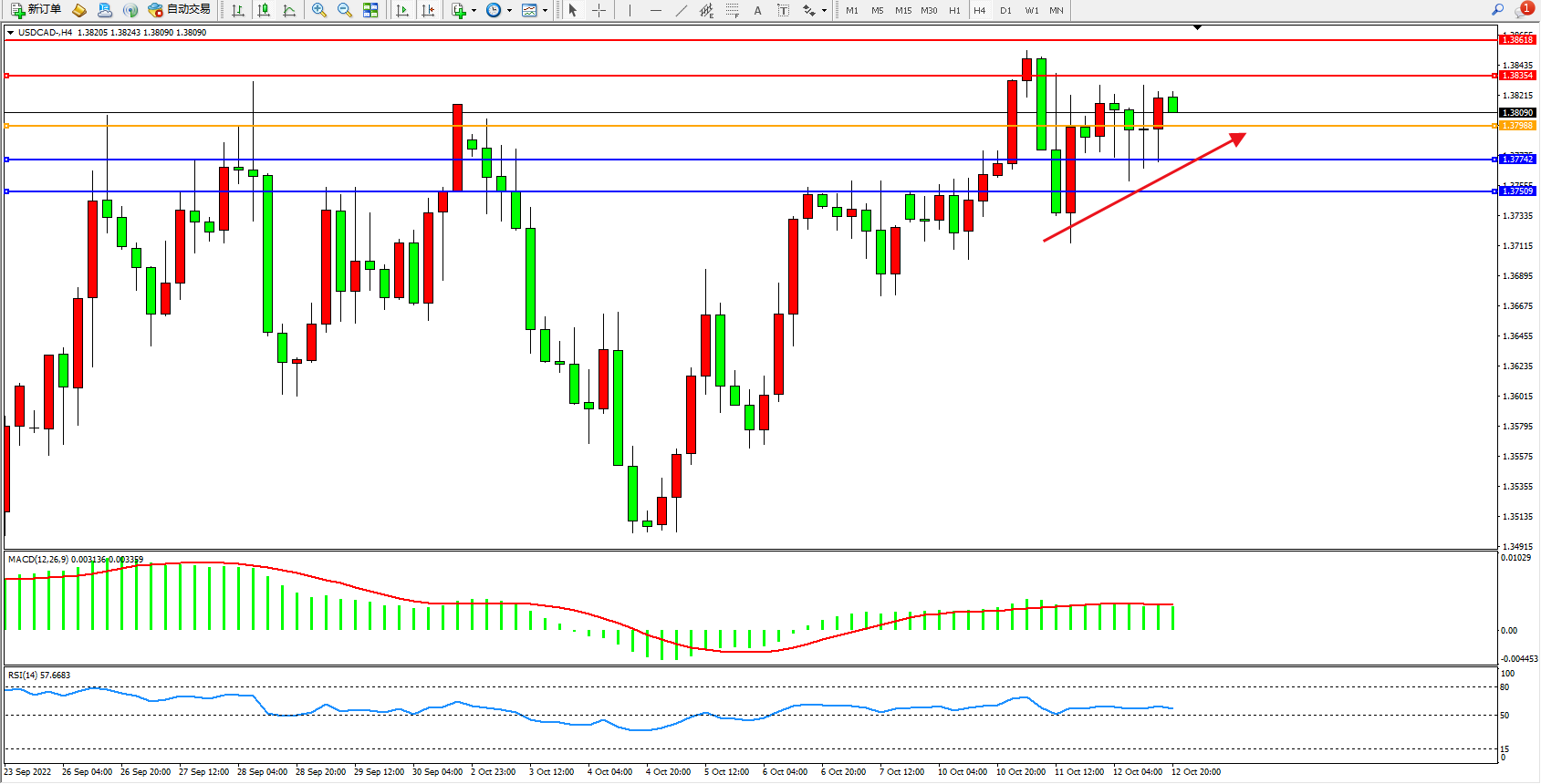 4小时图看:多头动力维持震荡上扬,高位短期波幅空间逐渐收窄,开始缓慢向上移动中,MACD指标处于多头区域弱势徘徊,RSI指标处于50均衡线市场窄幅整理;