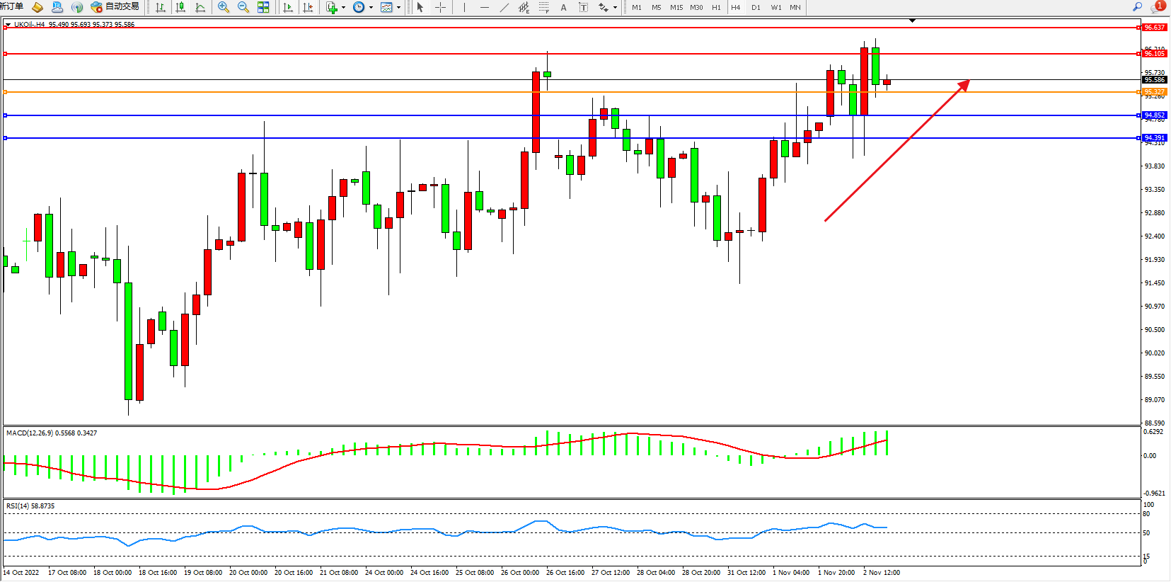 布油维持95.586附近震荡,随着欧盟加强对俄罗斯的制裁,石油市场可能会出现严重的供应中断。在欧盟下个月禁止通过海运从俄罗斯进口石油后,俄罗斯的石油日供应量可能会减少100万至300万桶,油价可能再次升至每桶100美元。