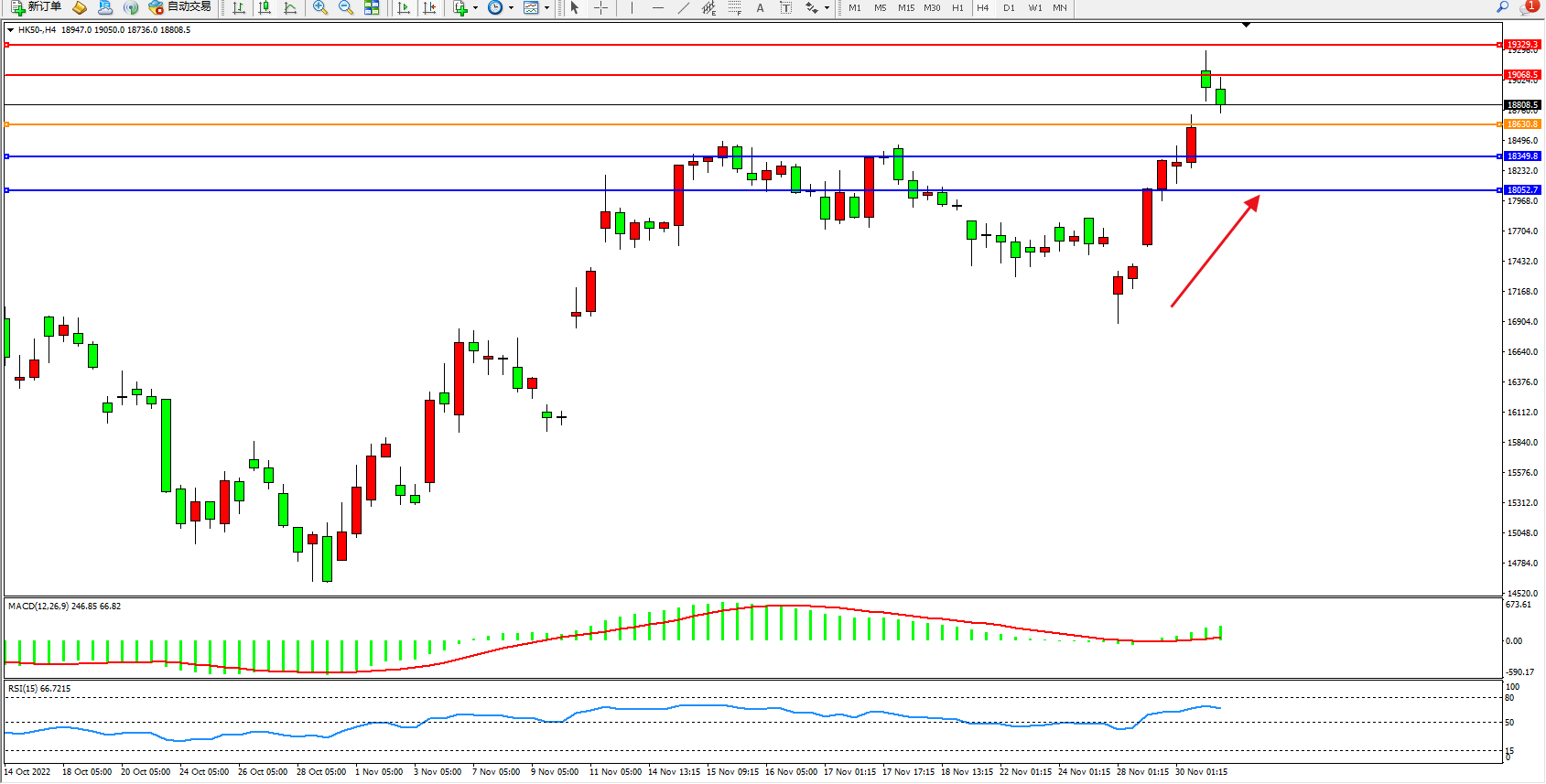 香港恒生指数12月1日(周四)收盘上涨139.21点,涨幅0.75%,报18736.44点;港股高开低走,三大指数尾盘短线下挫,恒生科技指数涨幅收窄至1.08%,盘中曾大涨6%,恒指涨0.75%19000点得而复失,国指尾盘更是翻绿。科技股部分转跌,美团、京东、网易小幅收跌,百度涨超5%,阿里巴巴、腾讯维持涨势;南下资金全日净流入44.76亿港元,大市成交额为1985亿港元。